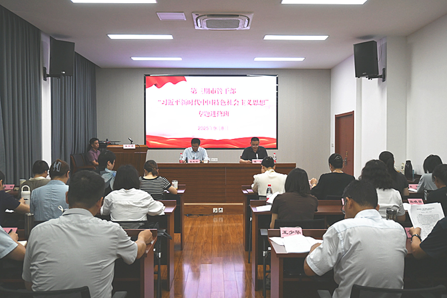 9月8日上午,第三期市管干部“习近平新时代中国特色社会主义思想”专题进修班在我校开班。本期进修班以“习近平新时代中国特色社会主义思想”为主题,将通过课堂教学、参观学习、交流研讨和分组调研等多种方式开展。来自全市各条线的47名学员将参加为期三周的集中培训。市委组织部副部长、市公务员局局长张利平做了动员讲话。